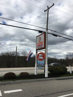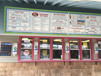 Given the commercial zone we were in, Mrs. & Me actually felt like an oasis, with lots of trees, tables and an old-fashioned ice cream feel even though it’s attached to Dunkin Donuts. We each had a small bite to eat – veggies, peanut butter sandwich – before we prepared ourselves for ice cream #2.