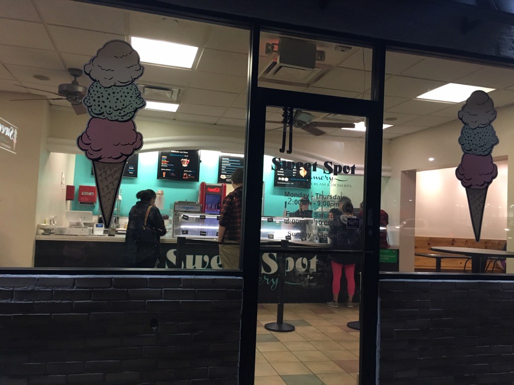 Sweet Spot Creamery sells a ton of their own homemade treats in addition to ice cream. We tried lots of flavors, although if you’re gluten-free like me, you’ll have to skip a lot of them. It’s a cute setup inside.