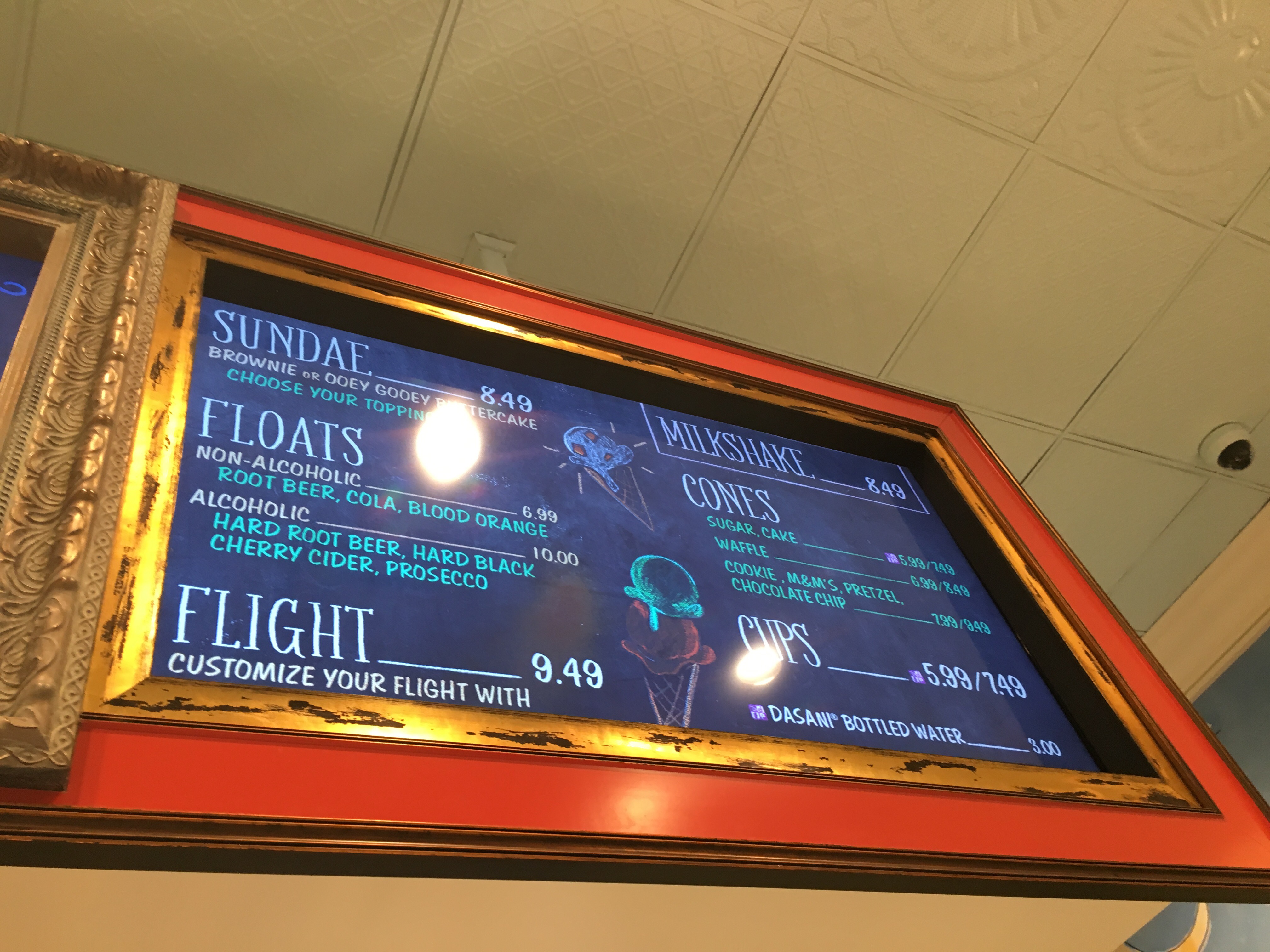 Getting ice cream in Epcot can seem like a deal compared to regular Disney prices. From my visit, I can’t say the same for Ample Hills necessarily. Even outside of the park, your visit isn’t going to be cheap. But the service is fabulous – try whatever you want! Really! – and there’s not only a wide variety of flavors; there are tons of options, including alcoholic ice cream drinks and a sampler for the undecided like me!