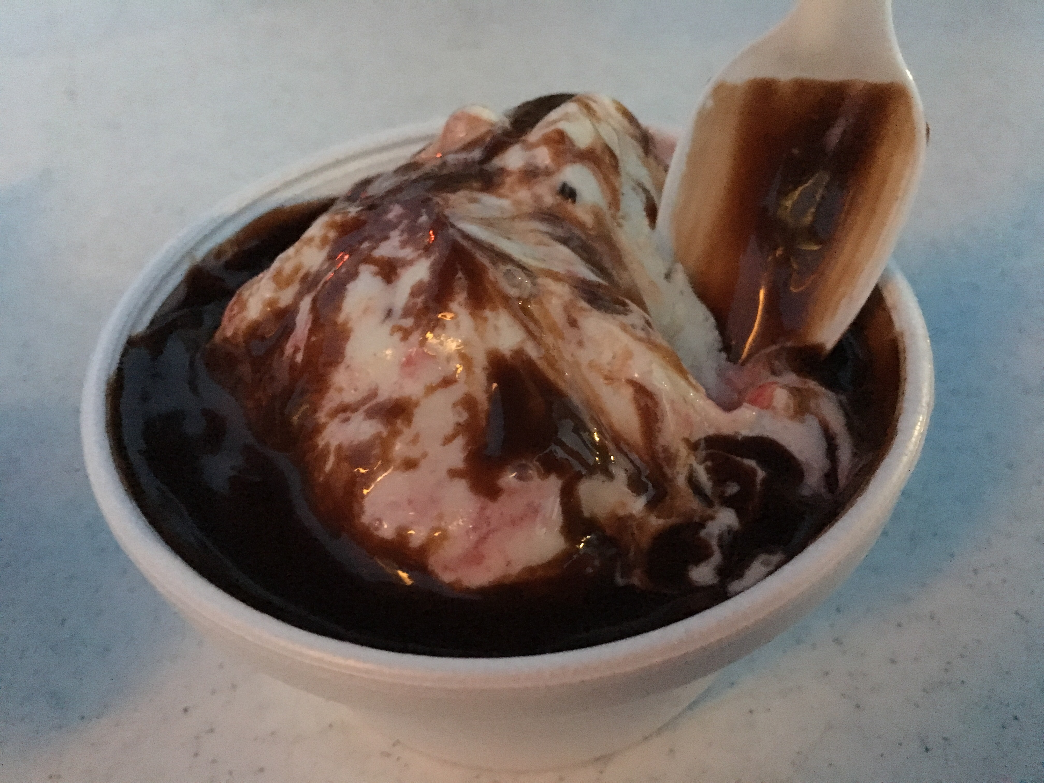 I ordered a small for $4.50, which honestly looked like a medium, and they let me get two flavors. These were big portions that felt fair given the prices. I got my ice cream in a white chocolate bowl!