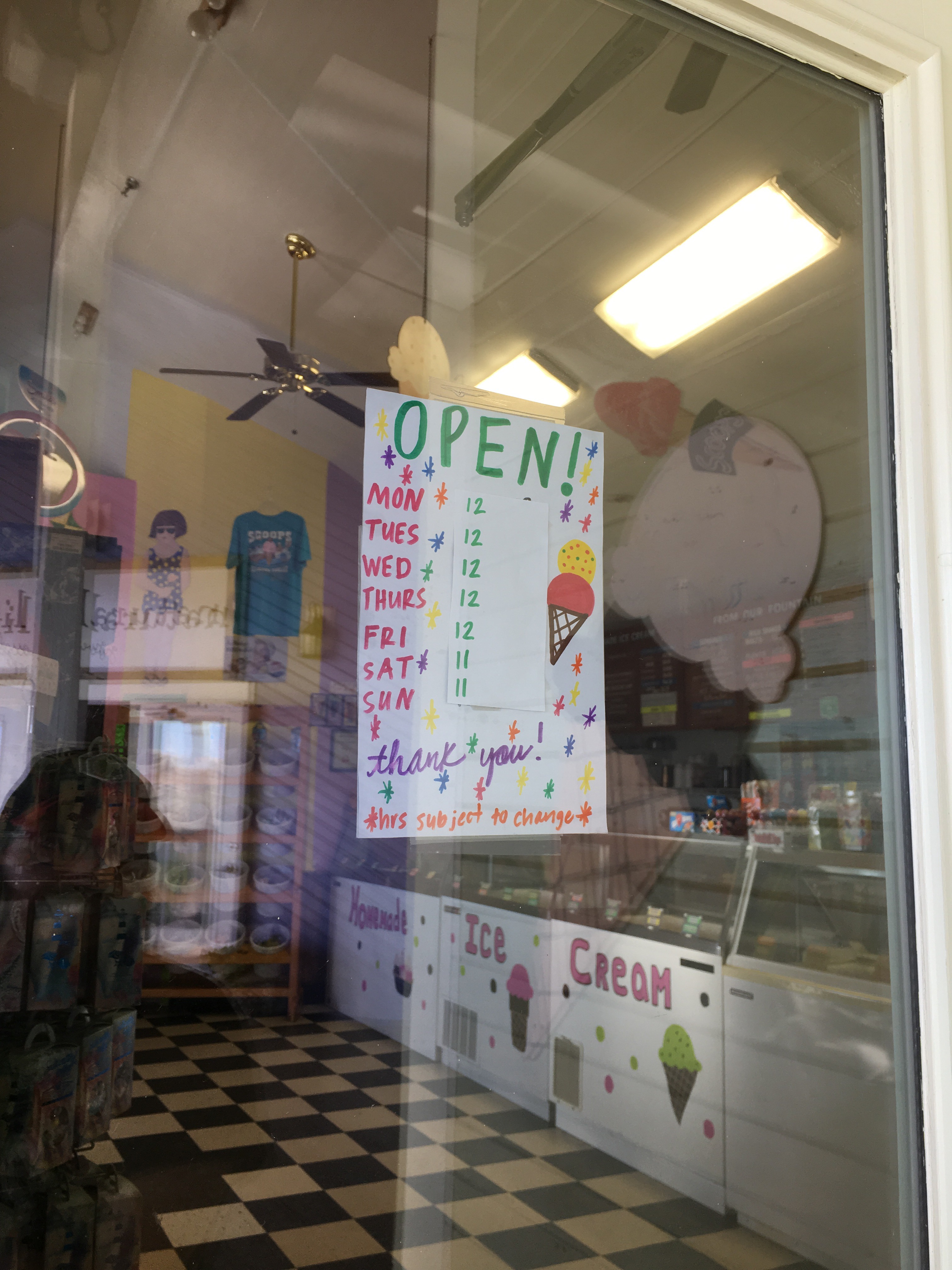 We both ordered a single size homemade chocolate chip ice cream. We found it milky, with a light base, and with delicious, not too sweet mini chocolate chips. It was a hard texture, but it melted easily in the mouth. We enjoyed it a lot and appreciated the effort at homemade ice cream. (Was it our favorite ice cream on the Outer Banks? No. But it’s well-worth it if you’re in Duck!)