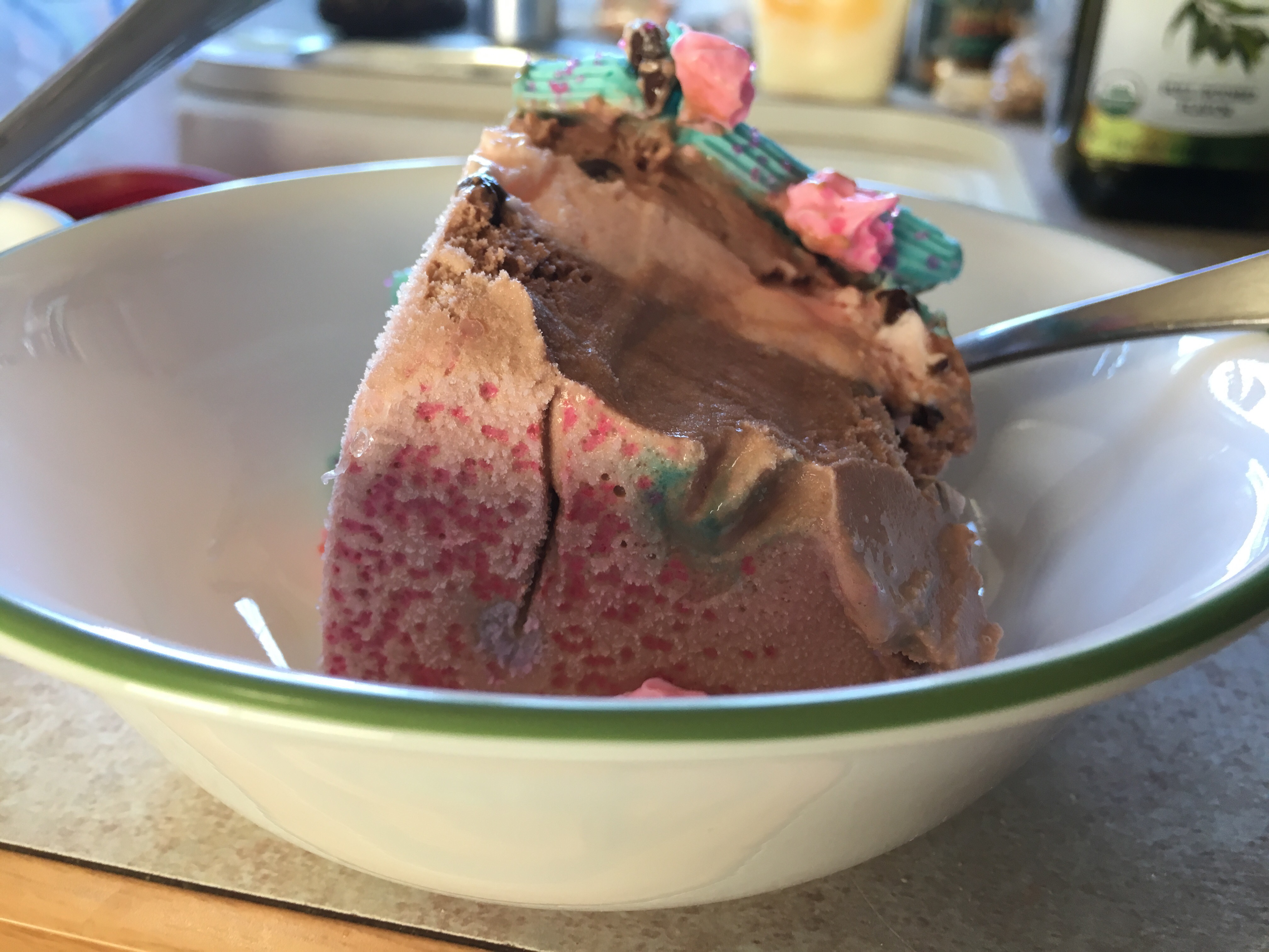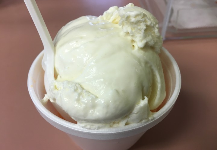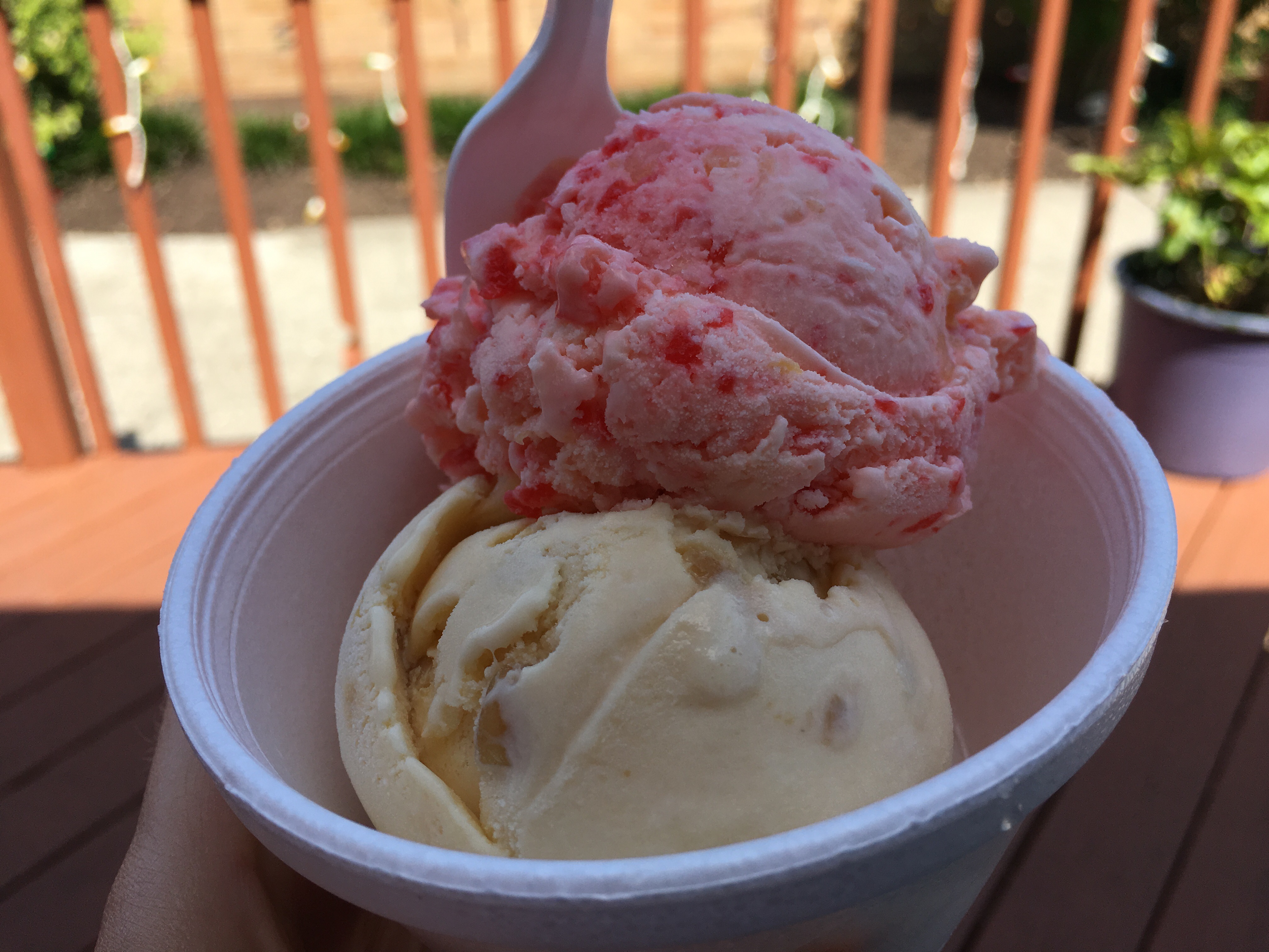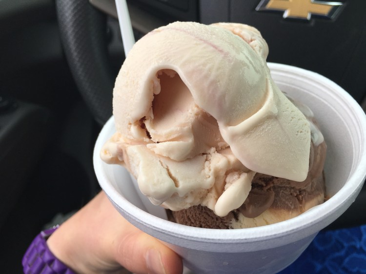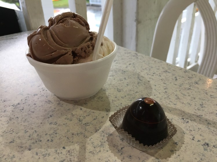 When we arrived, we learned that we would have been better off calling in our order a day prior, to request a gluten-free donut. Lucky for me, they had one left. They also make homemade chocolate chip and french vanilla ice cream (plus soft serve), and they carry some standard premium flavors that they don’t make themselves.